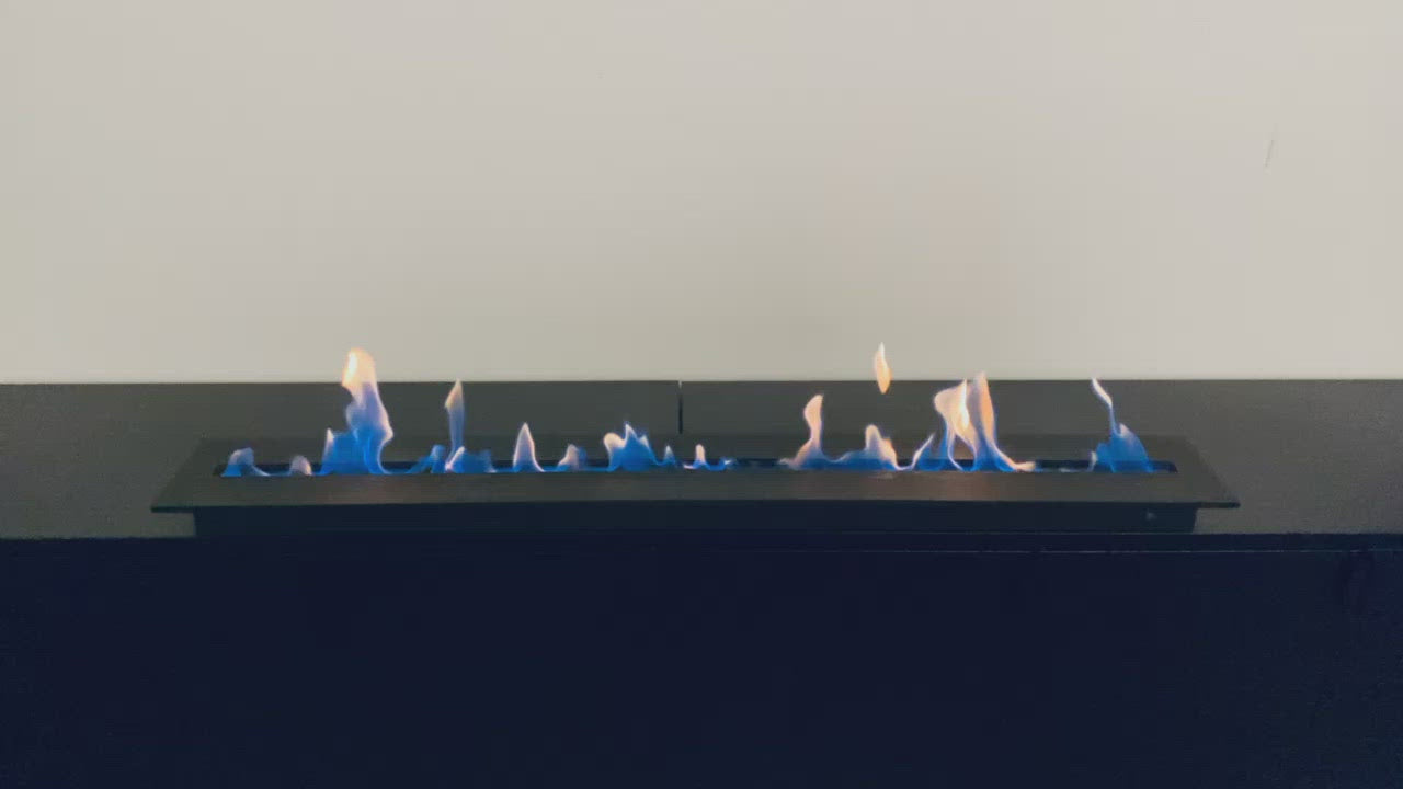 Het bio brander inzetstuk voor de inbouwhaard is gemaakt van hoogwaardig 1,5 mm dik staal, gepoedercoat met een hittebestendige zwarte semi-matte lak. Het deksel van het inzetstuk bestaat uit twee delen - het is een nauwkeurig laser gesneden element van plaatstaal met een dikte van 5 mm, ook beschermd met dezelfde hittebestendige verf als het frame. Hierdoor is het onderdeel dat het meest opwarmt door vuur beschermd tegen eventuele vervormingen en behoudt het volledig zijn oorspronkelijke vorm. De perfecte pasvorm van de rand van het deksel garandeert een nauwkeurige regeling van de grootte vlammen en een snelle en gemakkelijke blussing.